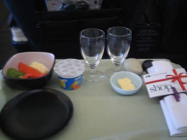 Had to skip my entree as it was a shrimp dish, so I had salad and waited for the trolley to come around for the mains. The main course of fish was v average, and like the brekkies from the flight before - wouldn't look out of place in YCL. I've said it before and I'd said it again - Cathay's regional JCL catering needs some serious work on. I was peckish and ended up having both cheese and ice cream.