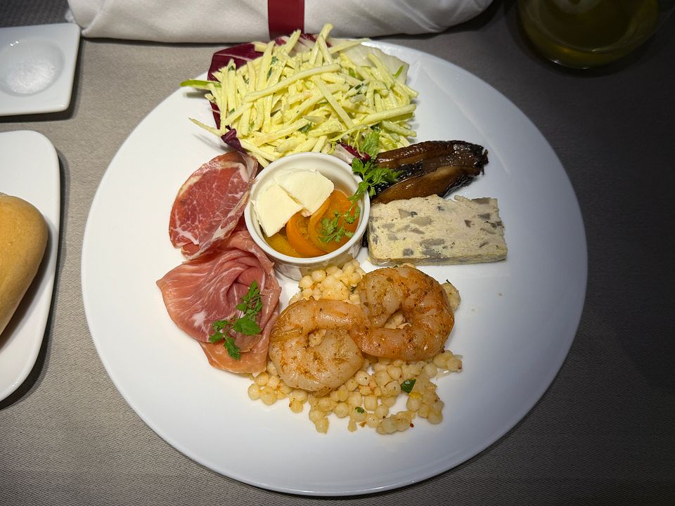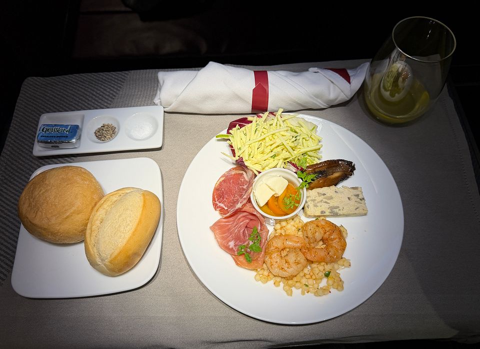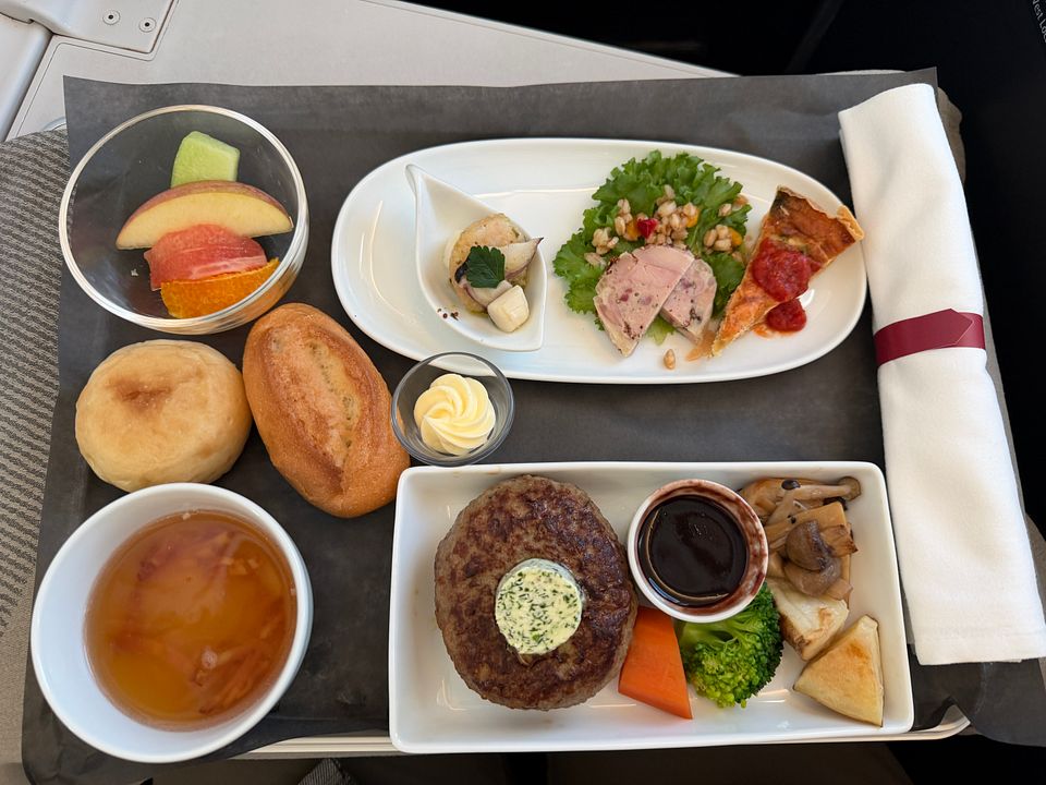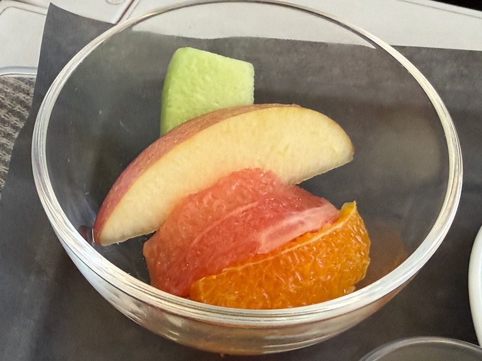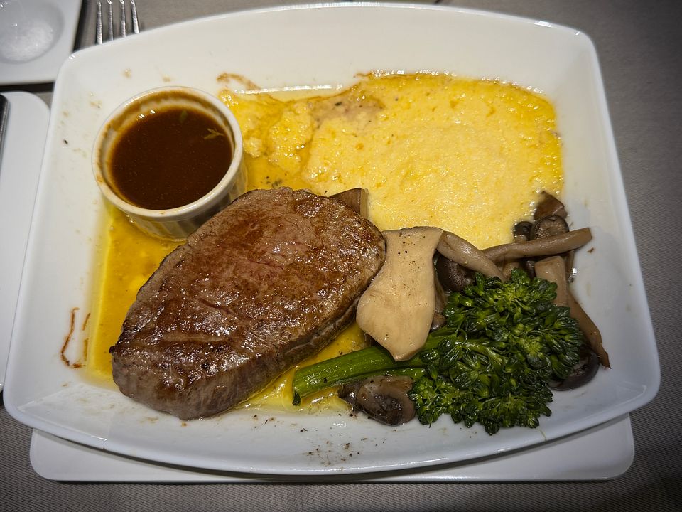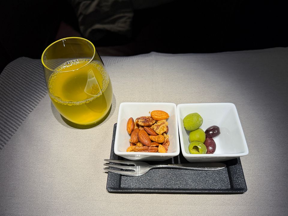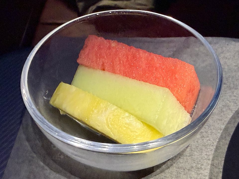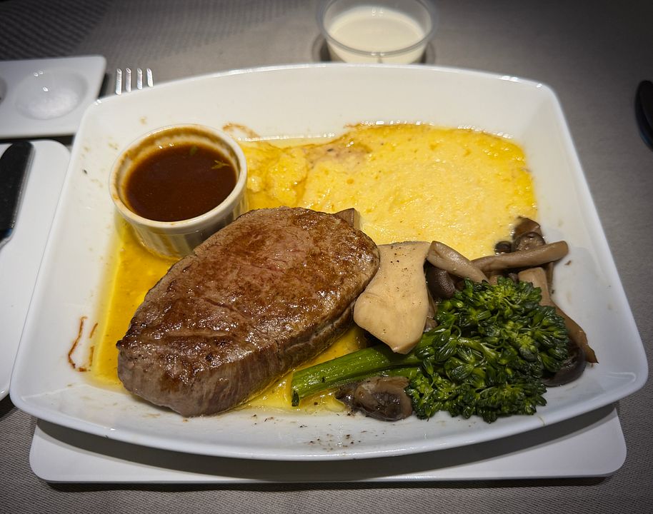PS. A truly crazy service plan for this midnight flight! The only formal meal flight was served nine hours after takeoff and five hours prior to arrival. It was awkwardly timed and simply inappropriate. They should serve a full meal three hours prior to arrival, and just do a la carte for the flight. I had to order many dishes because they were quite small and I was hungry. Since Soho lounge closed early and there were just limited restaurant and food options at terminal eight after 10pm (US airport truly sucked in this aspect), and Greenwich lounge food was truly vile, I had to rely on inflight food and my own snack pack.