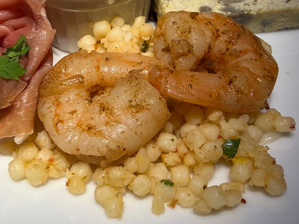 Harissa Spiced Pearl Couscous Salad with Shrimp