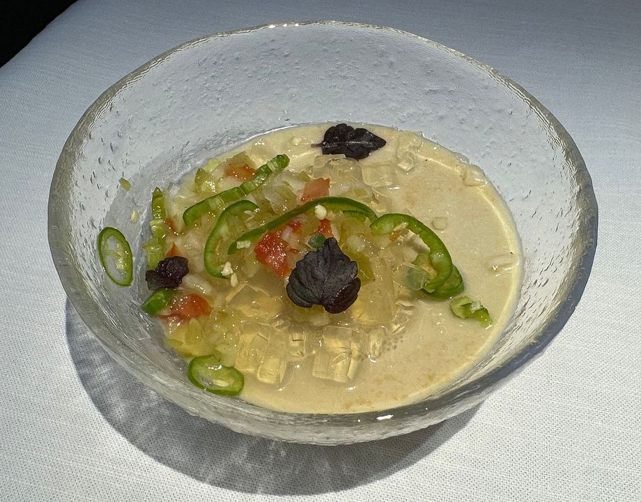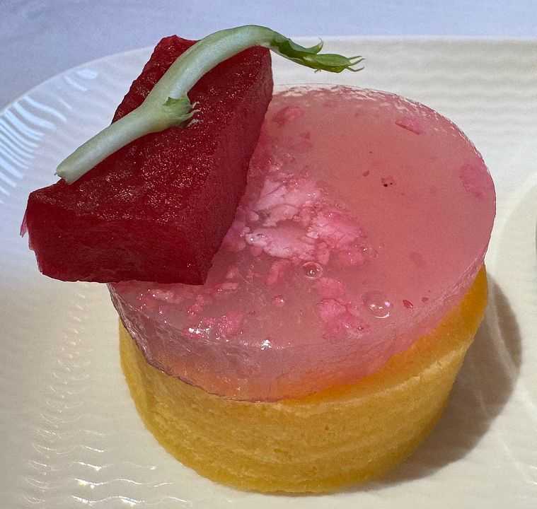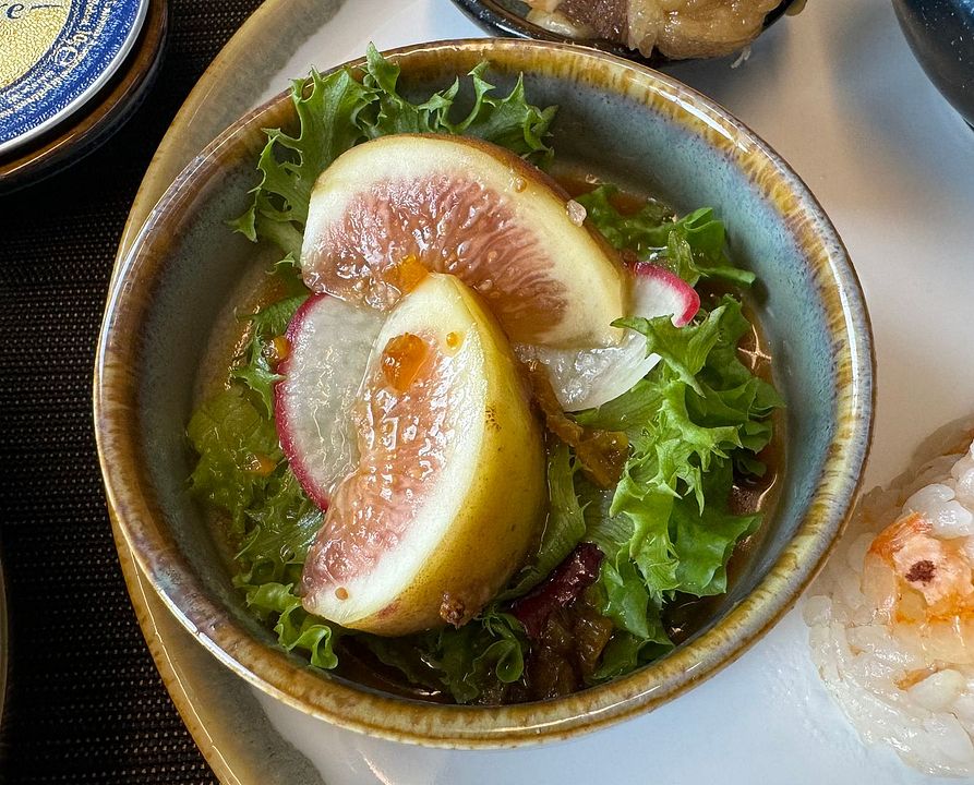 Silky Mountain Yam, Salted Eggyolk Amaranth Greeen, Sakura Pickled Radish