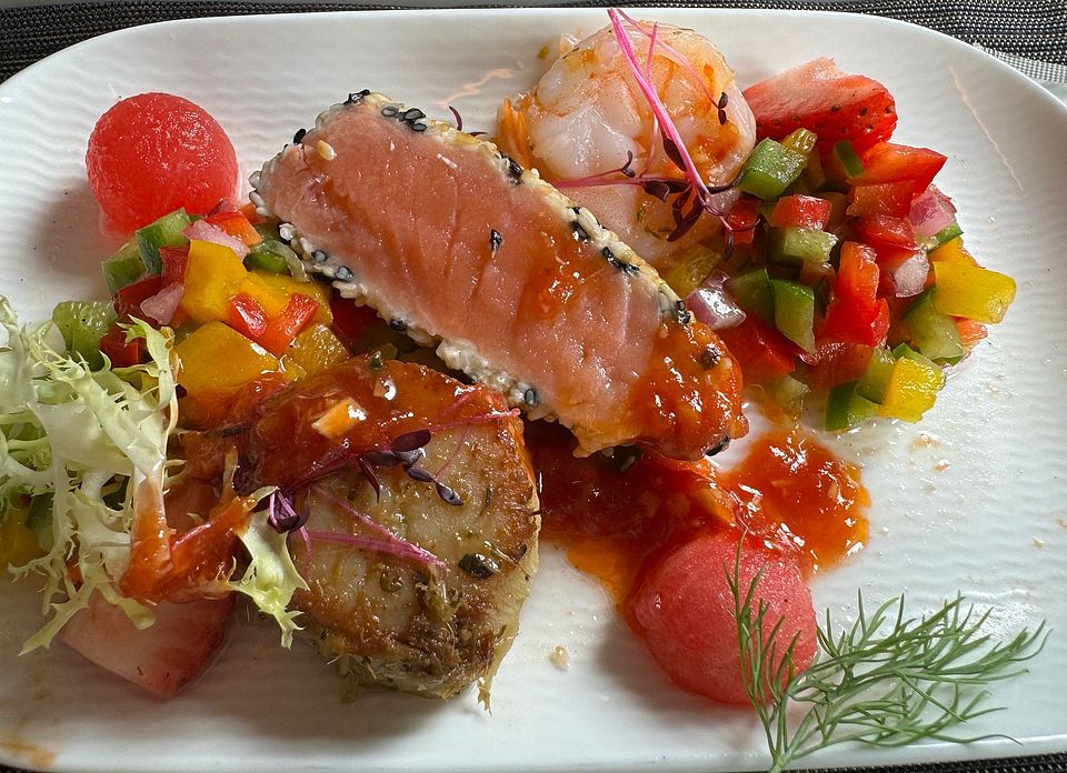 Smoked Duck Salad, walnut, Orange Vinaigrette