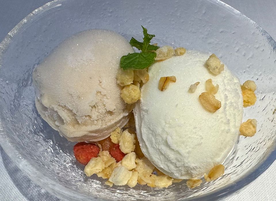 Rice Mochi Ball, Adzuki Bean Sauce, Panna Cotta