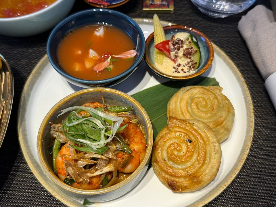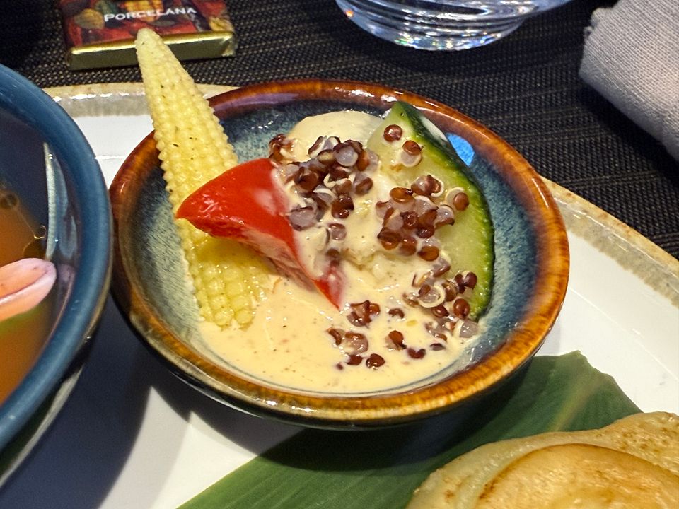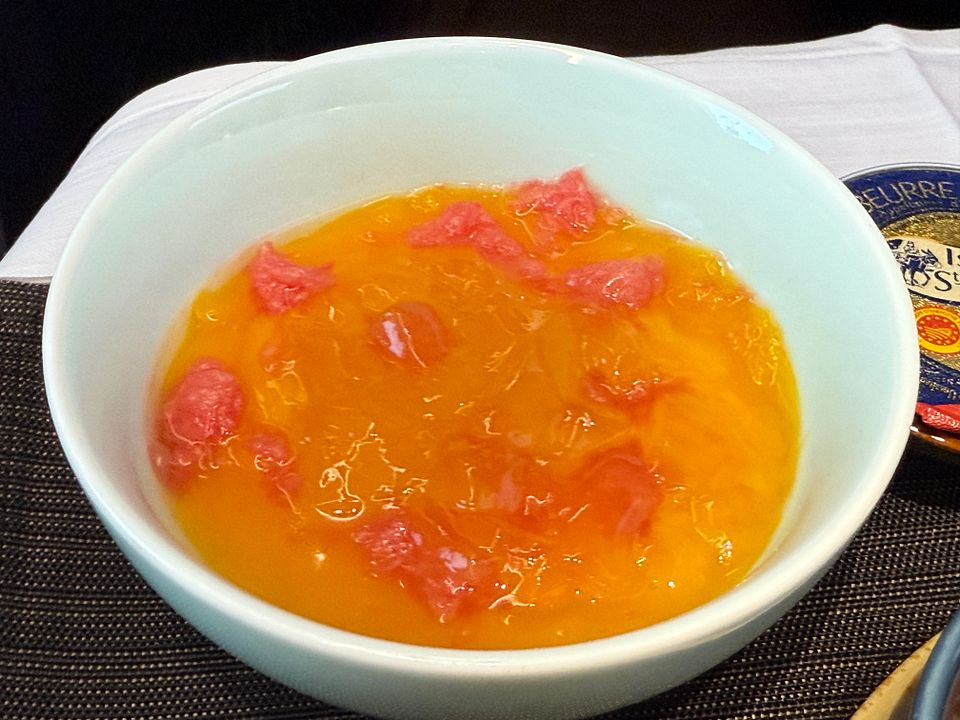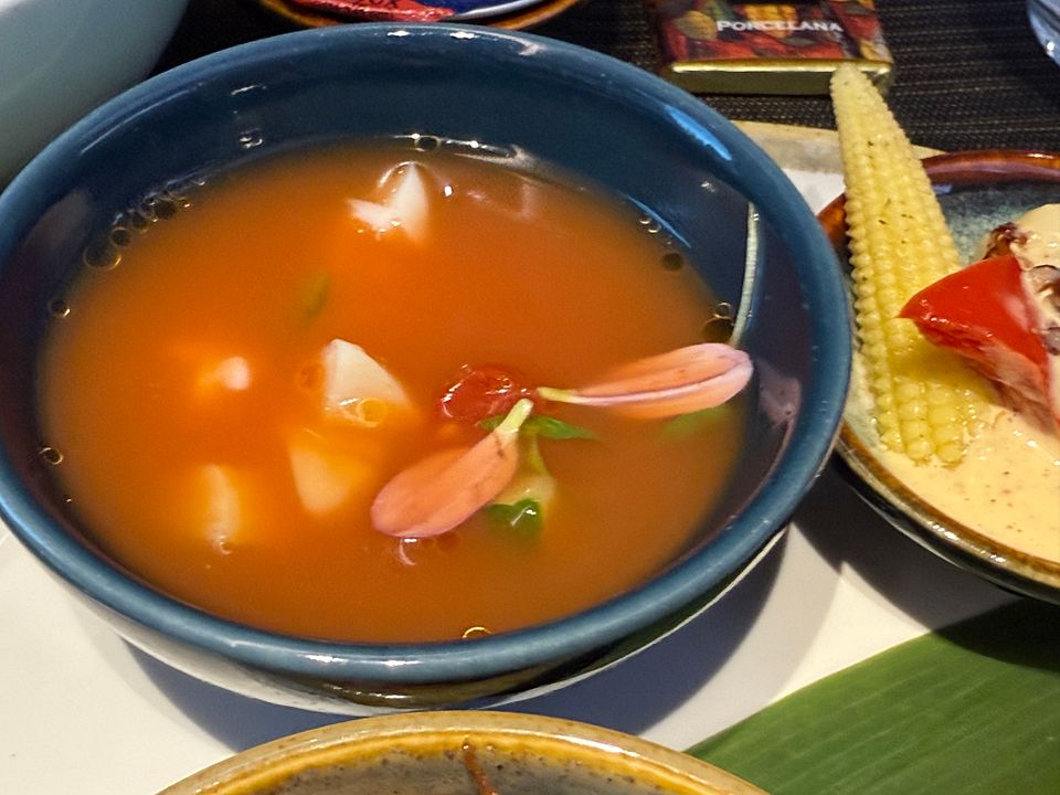 Seared Scallop, Tomato Lemongrass Gazpacho, Thai Basil, Shrimp Oil