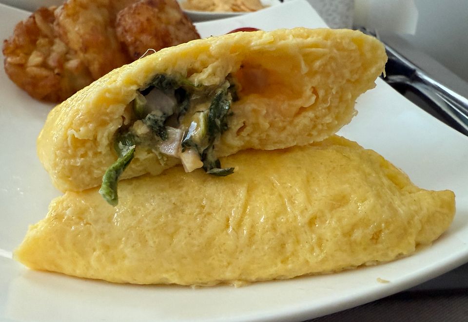 Spinach, Ham and Cheese Omelet with Hash Brown Potatoes
