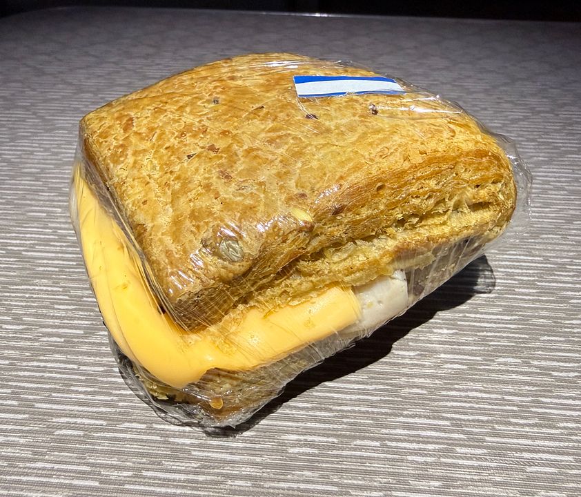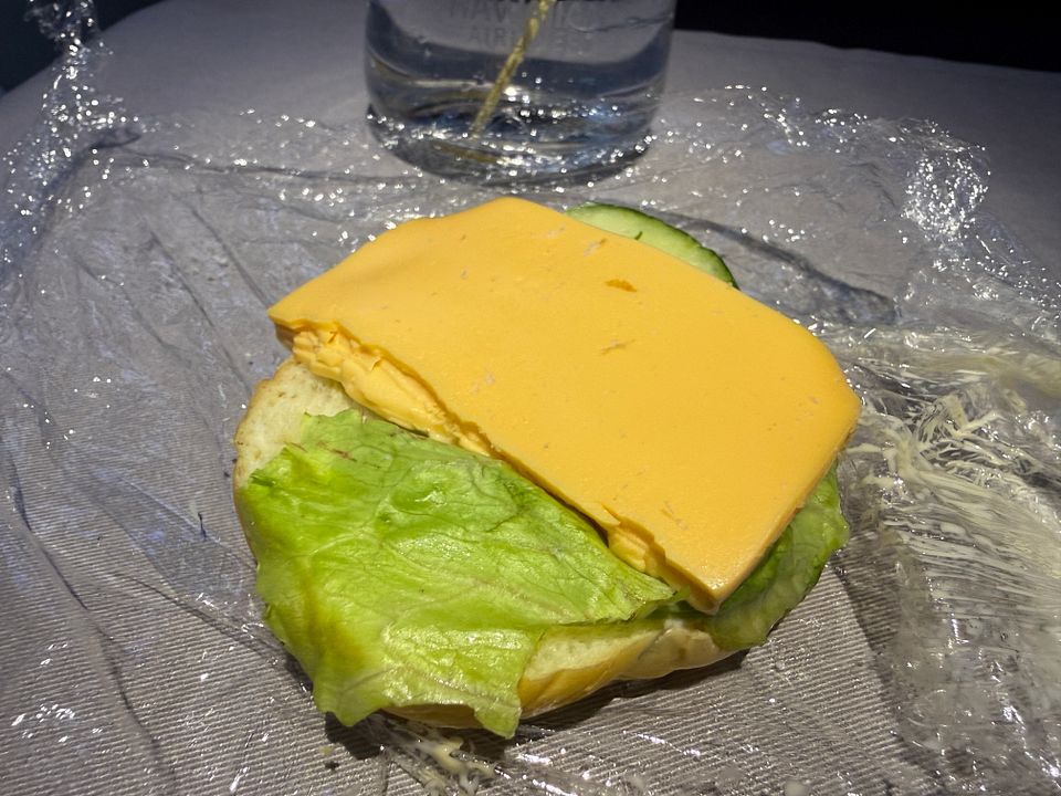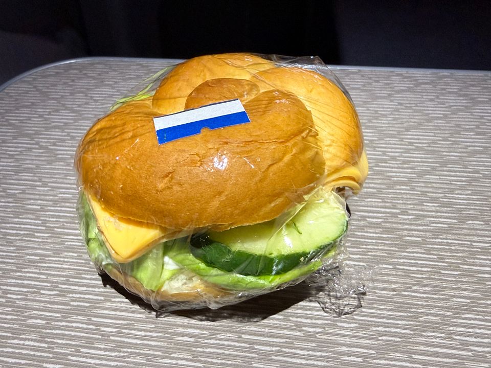 There is no formal menu description, but on top of the usual array of packaged snacks, two types of sandwiches were available in the galley between meals: