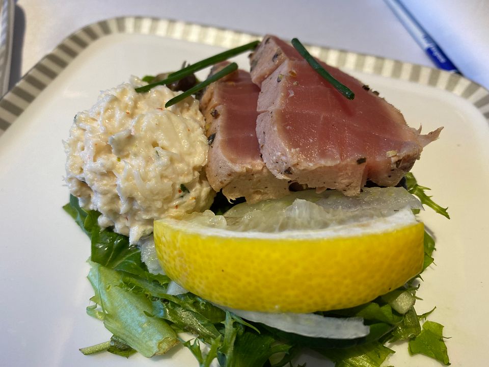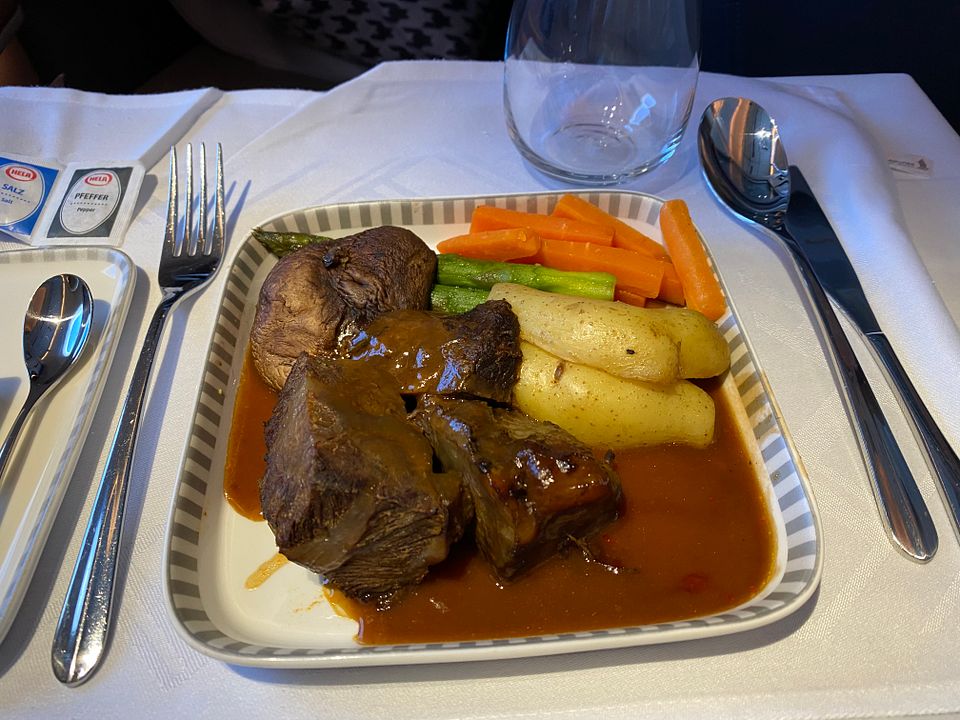 With fingerling potatoes, Portobello mushrooms, sautéed vegetables and salsa verde