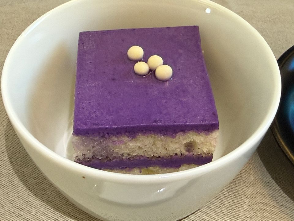 “Yuba”-rolled White Fish, Taro & “Konnyaku” Jelly with Green Soybean Sauce