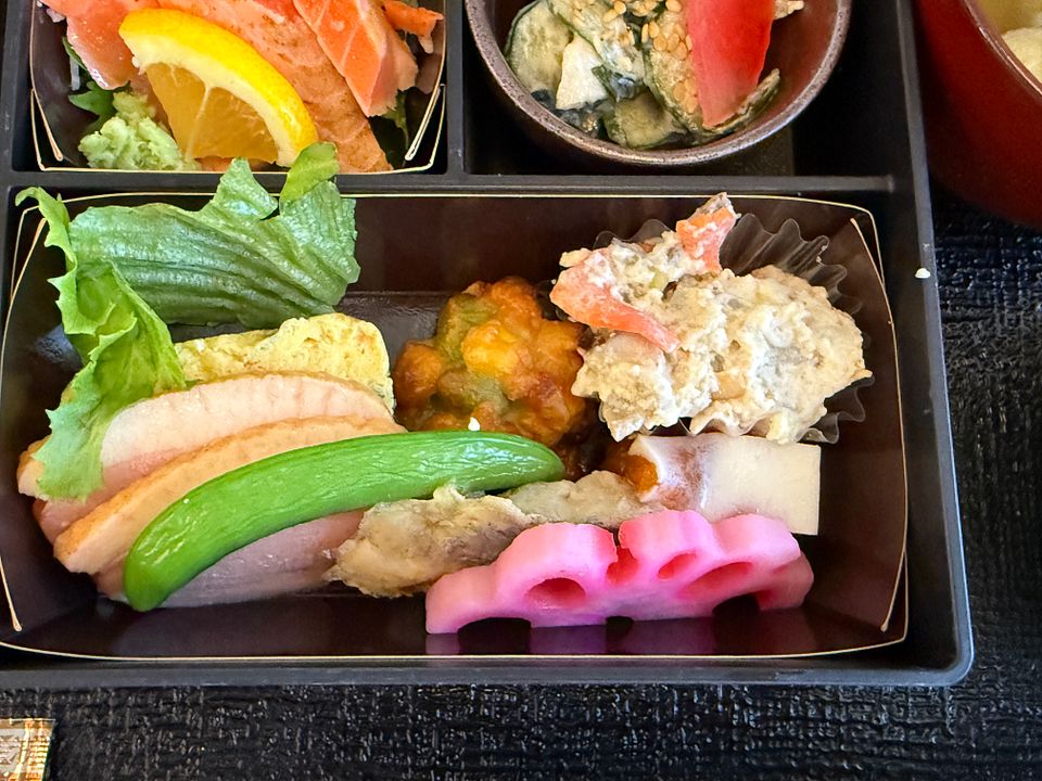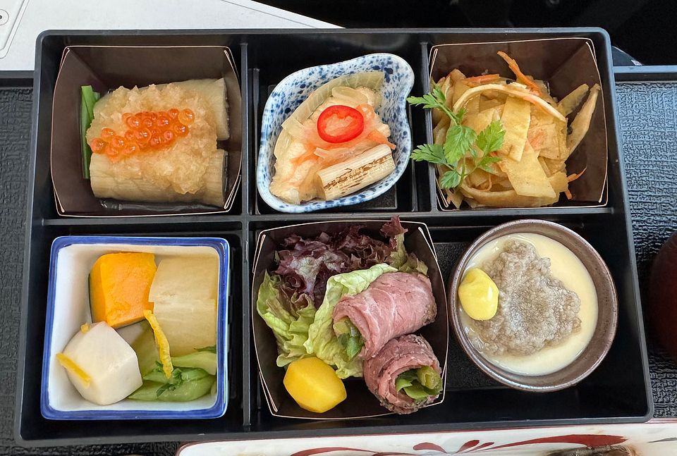 Selection of nine seasonal colorful delicacies in “Kobachi” bowls