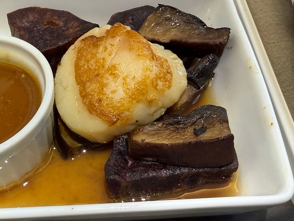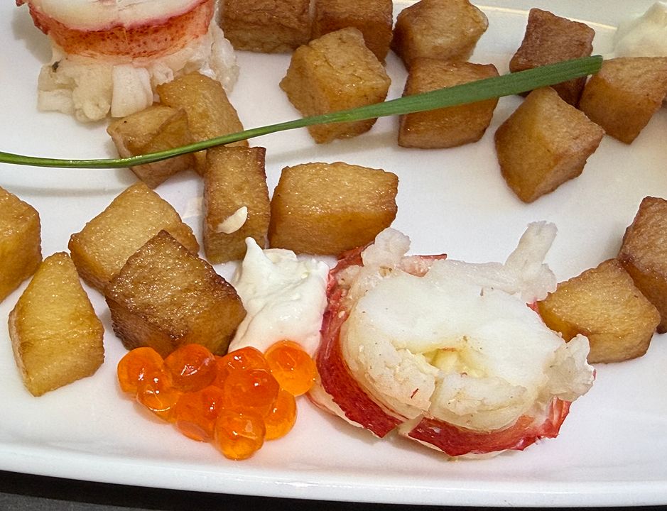 Steamed Top Shell Salmon & Lotus Root Egg Yolk Mousse